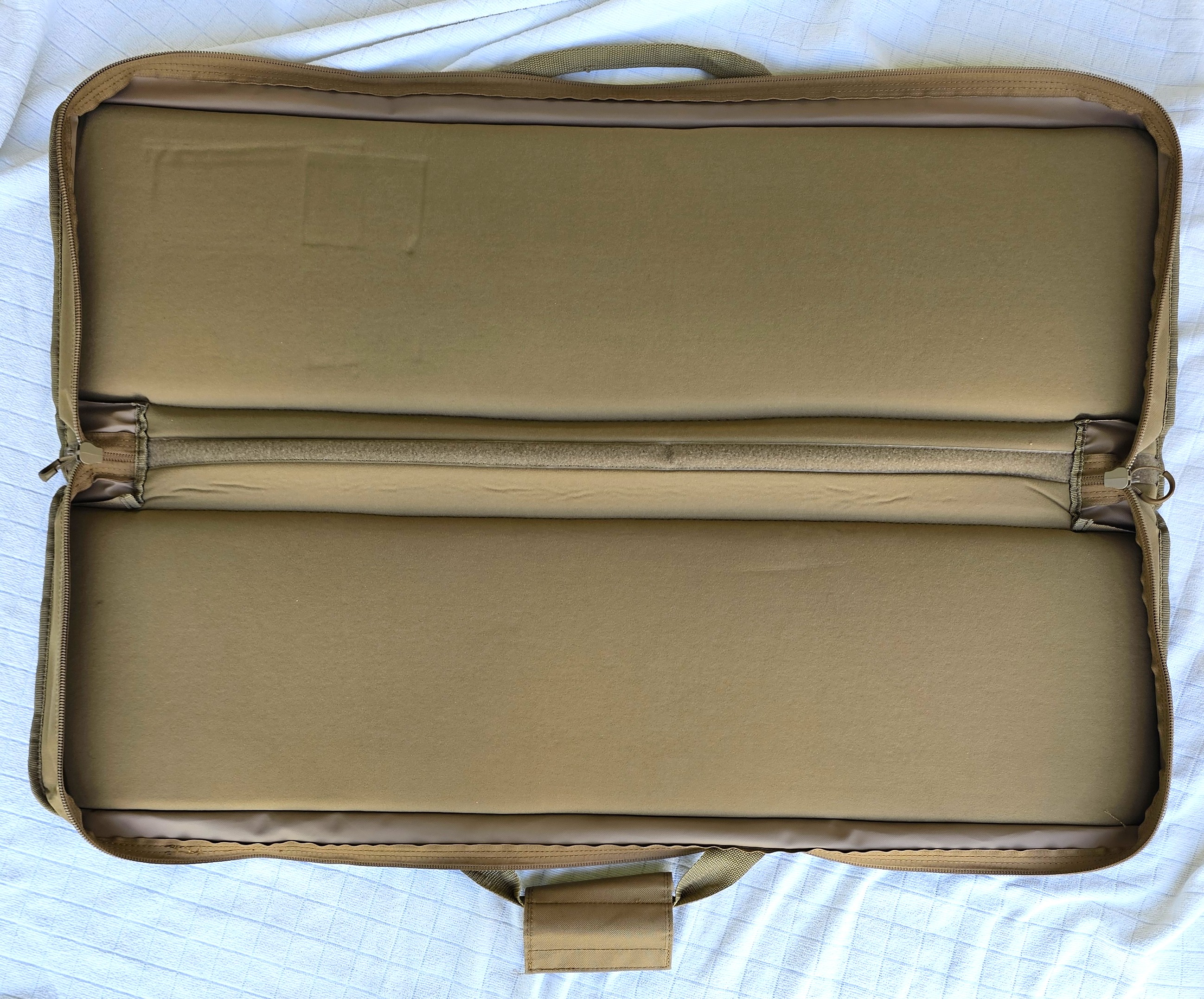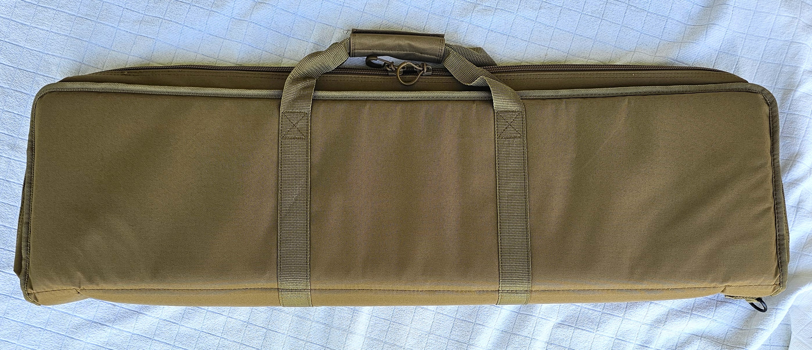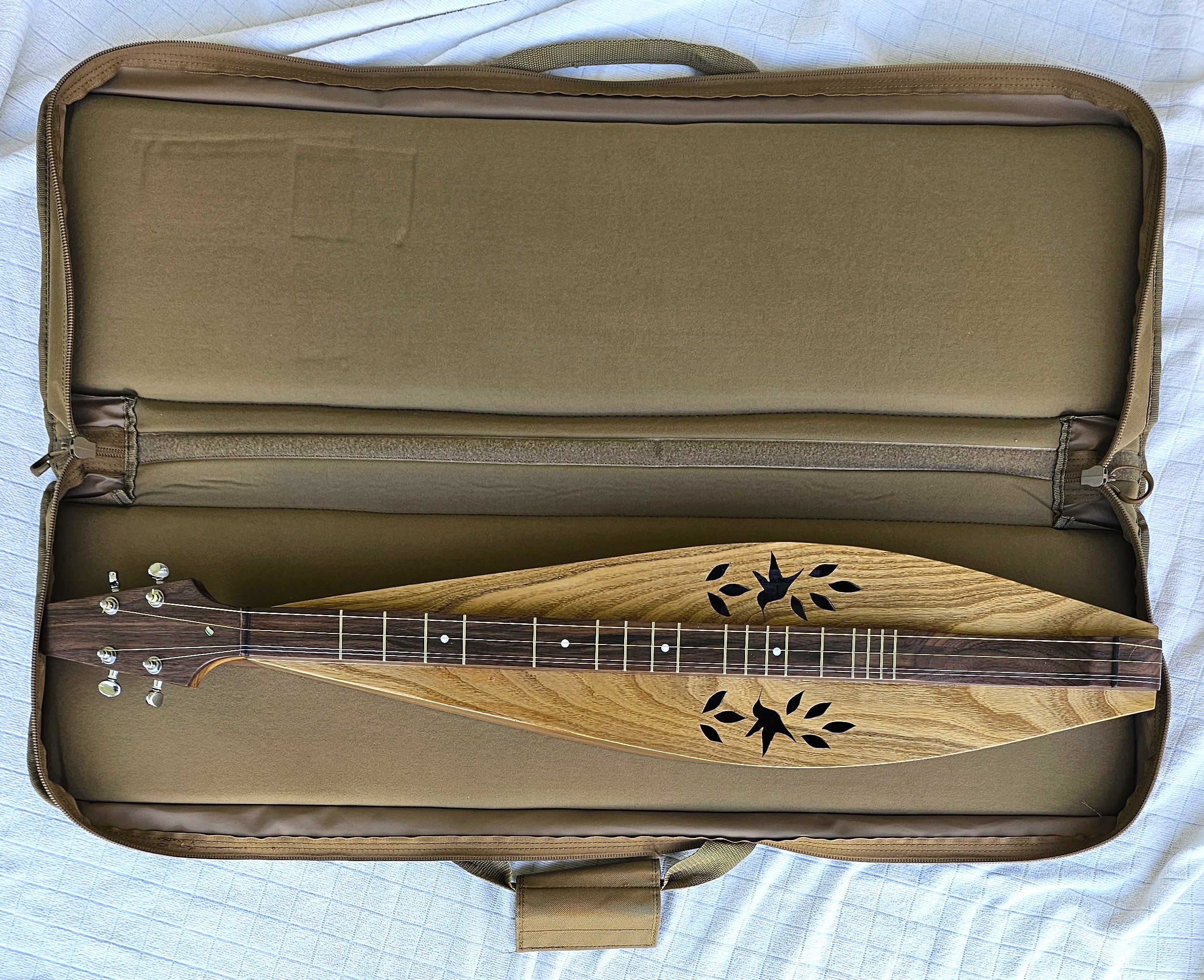 Case MD-2This is a rugged "gig-bag" style case with heavy canvas constrution and a heavily padded inner liner. The interior dimensions are 36" length and 10" width. The additional width along with the 4" deep sidewalls allows this case to accomodate deeper bodied dulcimers.It is made of heavy-duty, canvas/nylon type material with a soft heavily padded inner lining that is 1" thick (much thicker than other cases) and a sturdy nylon handle. The color is light brown / tan. Note: This is not a flat - envelope style case but a much thicker and better padded case with sidewalls and will offer excellent protection for your dulcimer and should last a lifetime.. Price $72 (Click To Enlarge) |